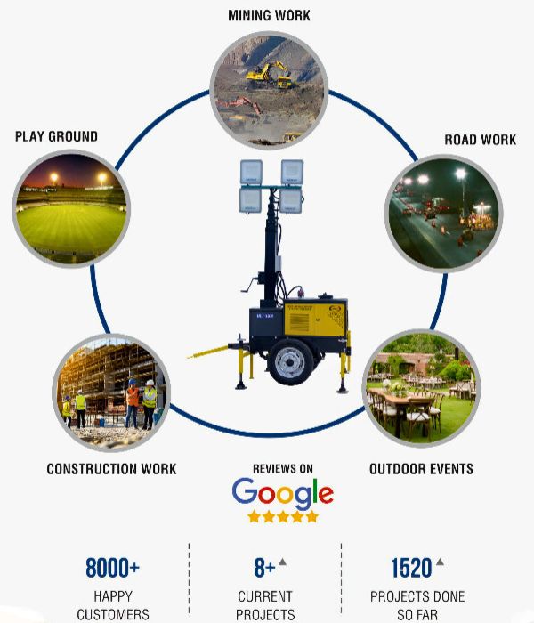 We understand that every project needs durable lighting solutions. That’s why we’ve built a strong lineup of products like *mobile LED light towers, **diesel-operated mobile flood lights, and **portable solar light towers*, catering to dynamic global requirements.